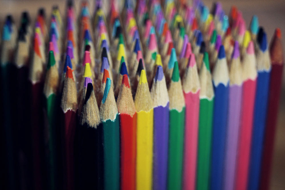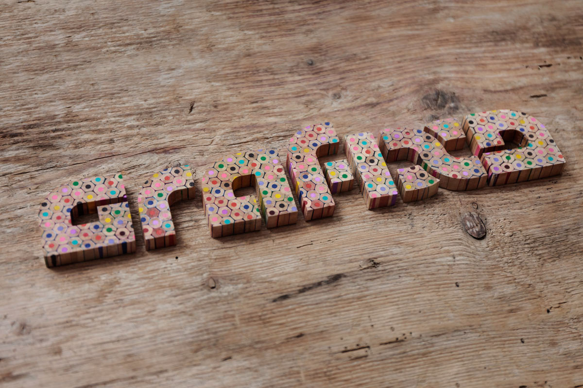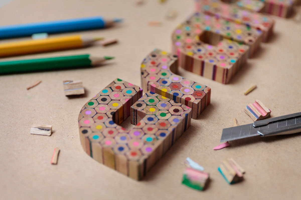 Our aim was to reinterpret the way we usually use this tool. We took some coloured pencils and ruined them so next we could rebuild them in a different way. We used the glueing–slicing–cutting technique to create what you can see below. We absolutely loved working through every single phase of this project, and we hope you'll find the results just as engaging and enjoyable.